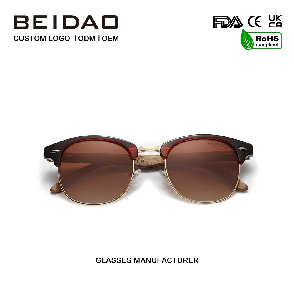 Gradient Brown Polarized Walnut Wooden နေကာမျက်မှန်များသည် အရည်အသွေးမြင့် သတ္တုဖြင့် ပြုလုပ်ထားပြီး အလွယ်တကူ ပျက်စီးမှုမရှိပါ။