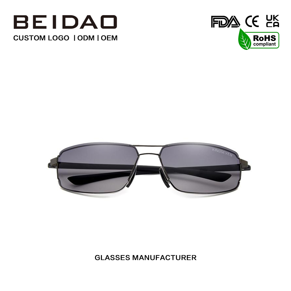Square Glasses အလူမီနီယမ် Polarized နေကာမျက်မှန်ဘောင်ကို အရည်အသွေးမြင့် သတ္တုဖြင့် ပြုလုပ်ထားပြီး အလွယ်တကူ ပျက်စီးမှုမရှိပါ။